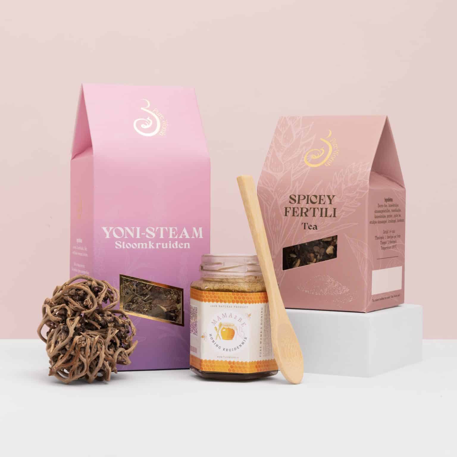 Dit complete starterspakket is speciaal samengesteld voor vrouwen met een kinderwens. Alles wat je nodig hebt om je cyclus te ondersteunen, je baarmoeder te verzorgen en je lichaam in balans te brengen.
